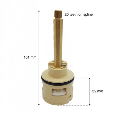 A 2 way long stem shower diverter cartridge that diverts water to 2Â separate outlets.