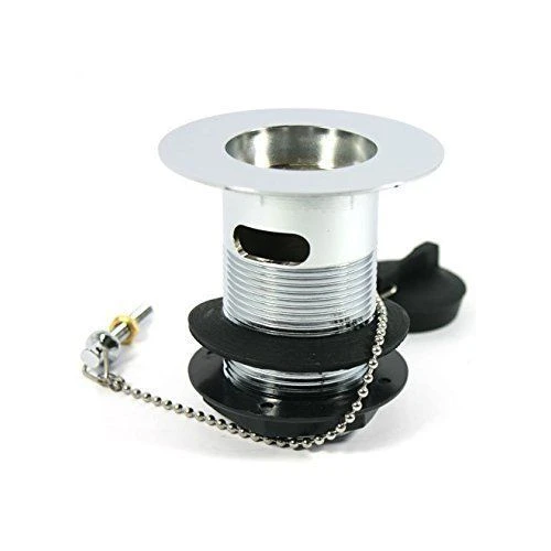 A chrome plated waste fitting for Belfast kitchen sinks supplied with black rubber plug.