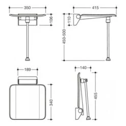 HEWI System 900 Hinged Shower Seat With Support Leg – Anthracite