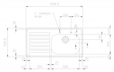 A no overflow hospital pattern sink and drainer – extra deep 250mm bowlÂ