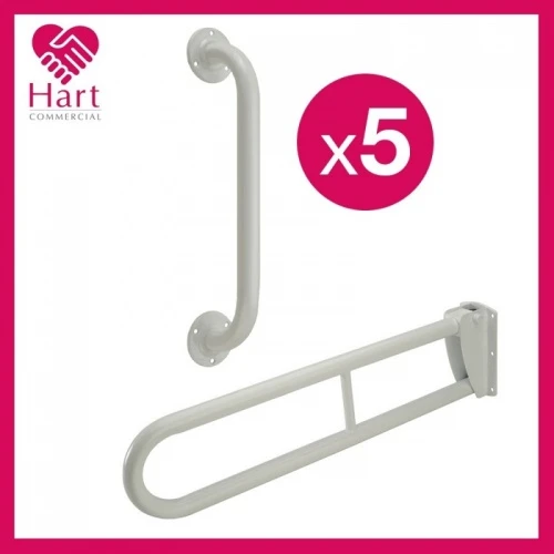 - Pack contains 5 x 600mm grab rails and 1 x 760mm hinged support arm