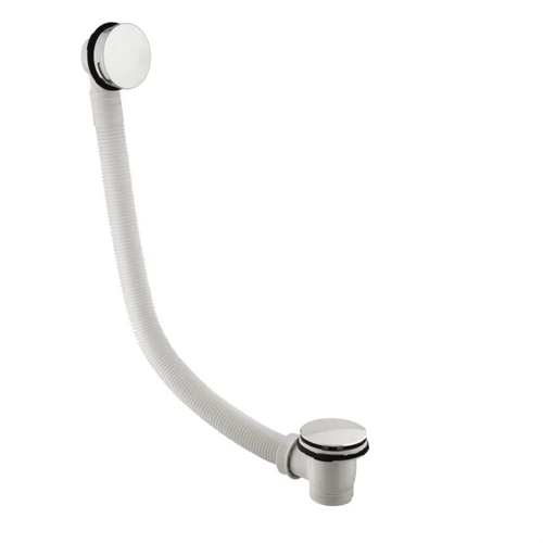 A premium bath waste and overflow with a ‘clicker action’ push button plug – simply push the plug to click it open or closed.