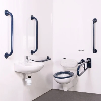 A wall hung ready to fit Doc ‘M’ pack for all commercial public use toilet rooms – provides a safe accessible environment for all users
