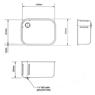 A ‘no overflow’ bowl with corner fitted raised upstand waste – 25mm flange with option to flush fitting (surface mount) or undermounting