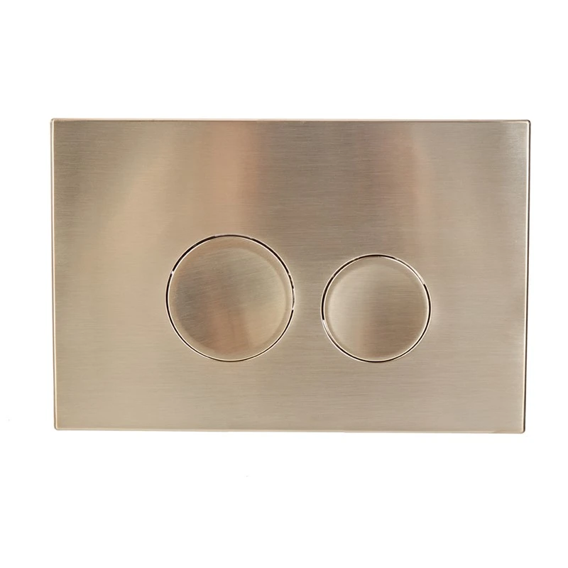 A rectangular dual flush plate for back to wall pans made from brushed brass