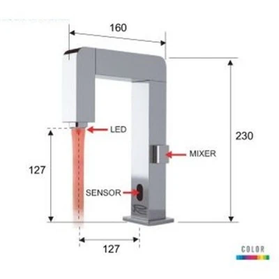 A designer basin mounted sensor tap that uses the power of the flowing water to illuminate the water flow, the tap incorporates a unique turbine cartridge that illuminates the flowing water in a variety of colours – This tap creates a stunning point of focus to enhance any washroom.
