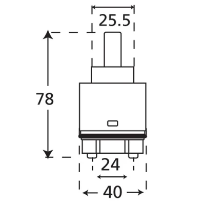 A replacement cartridge suitable for most single lever bathroom and kitchen taps that requires a raised open outlet type 40mm cartridge.